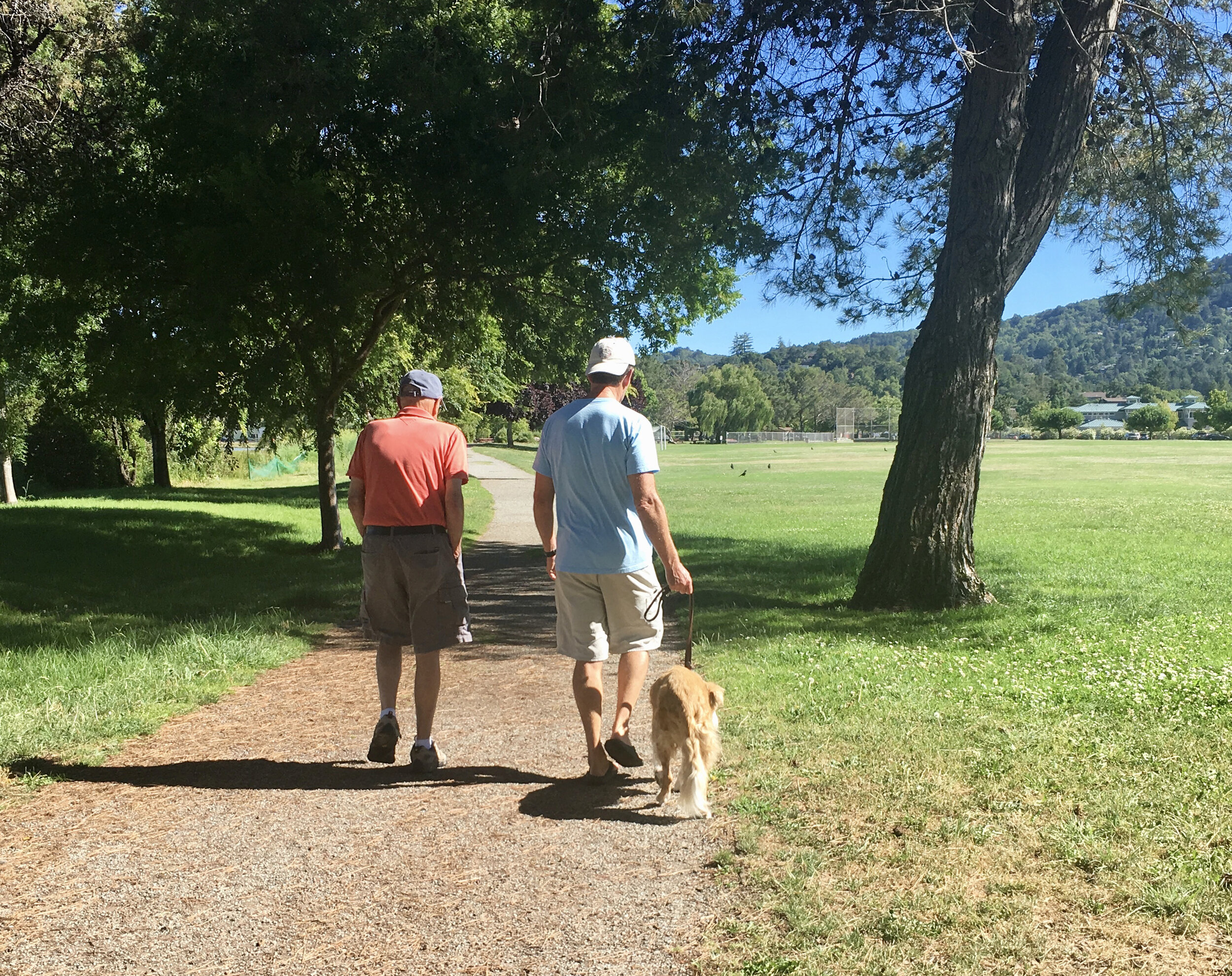 If a client has the ability or inclination , daily outings into nature or just around the block can contribute to overall health, reduce anxiety and promote general well being. Here we are at Piper Park enjoying a short loop which includes fresh air, natural surroundings and the ability to greet fellow walkers and dogs alike.